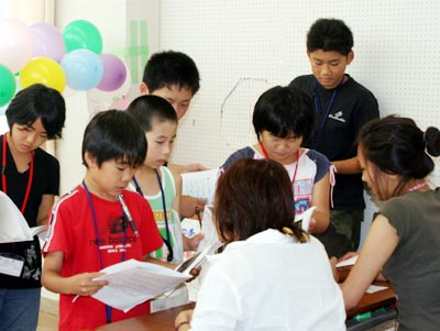 子供23名が参加し、親6名、JCメンバー15名が見守る中、徳山大学への韓国人留学生12名の協力のもと、1日の研修を受けた。
