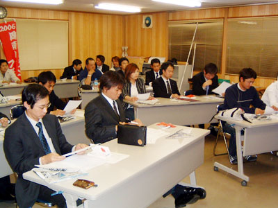 藤田委員長より「事業に向けての会議の流れをしっかり身につけ、(新入会員が運営担当する)8月例会を成功させましょう!」との挨拶の後、高松勇雄・中西毅両委員が事業の意義・流れを講義した。
