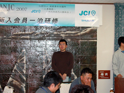 新入会員一泊研修が、周南市湯野の地「紫水園」で行われました。